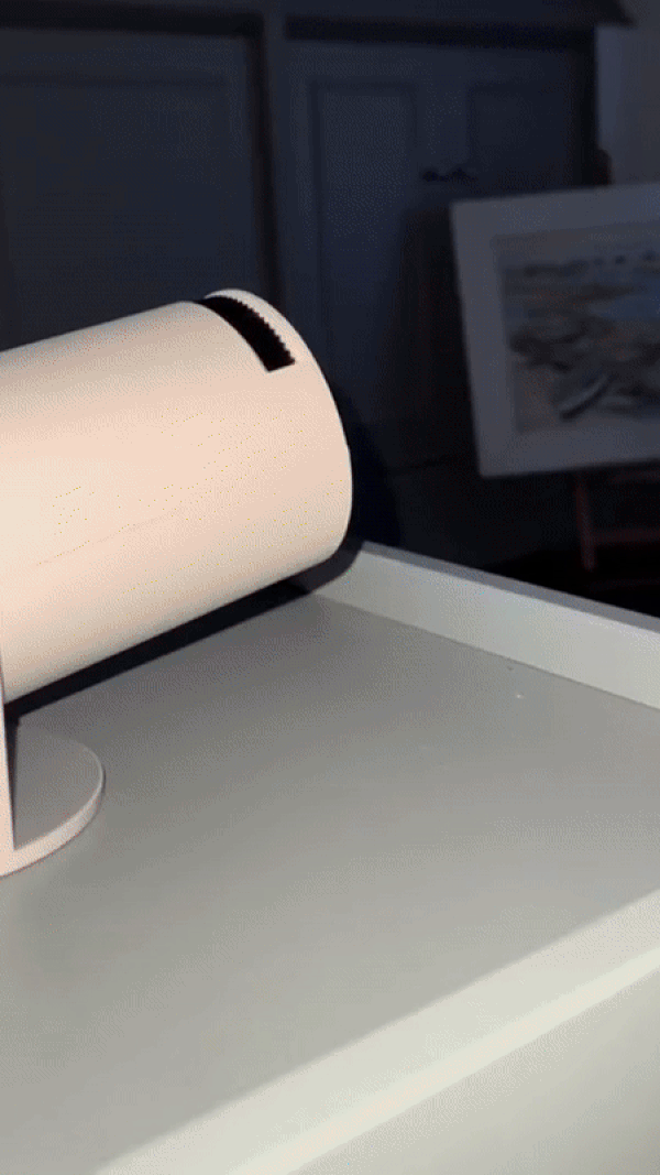 Flexible viewing from any angle — the projector head rotates a full 180°, letting you project from tabletop to ceiling or onto walls with ease. Quick to reposition for movie nights, presentations, or creative setup